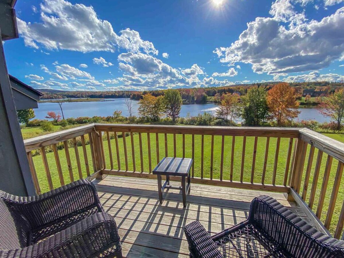 Hot Breakfast and Lunch INCLUDED every day in your stay. Our general store will make you fresh egg sandwiches and coffee. Subs or pizza lunch. Welcome to Pi π aka Lakefront Loft. One of a kind custom built 34 foot high raised container home overlooking a beautiful southern VT lake with direct lakefront property with your own private dock. Our spacious home custom designed and built with 8 shipping containers boasts every amenity you want. 3 master bedrooms designed with amazing panoramic views.