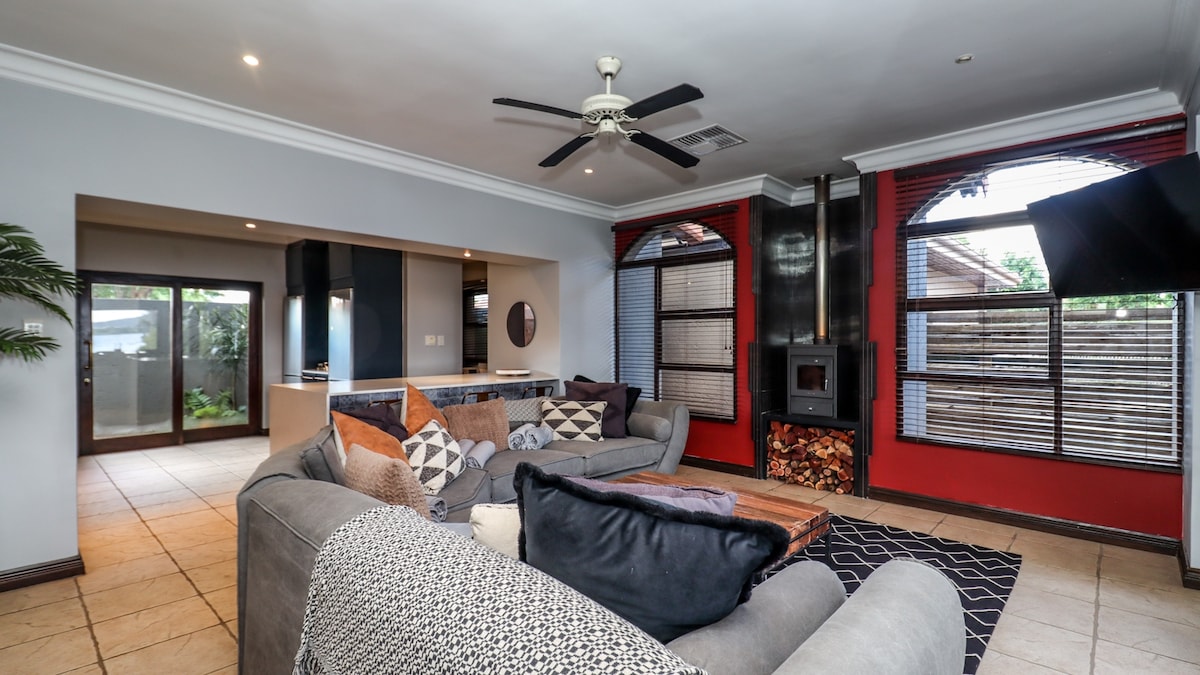 Escape to our charming one-bedroom log cabin in the heart of Hartbeespoortdam. Designed with a cozy Bohemian touch, our cabin is perfect for exploring the beauty of Hartbeespoort. After a day of adventure, unwind in an open-plan living space, with a kitchen, air conditioning, and free WiFi. Relax on the spacious patio, take a dip in the swimming pool, or simply soak in the suburban surroundings. Centrally located with a separate entrance and undercover parking.