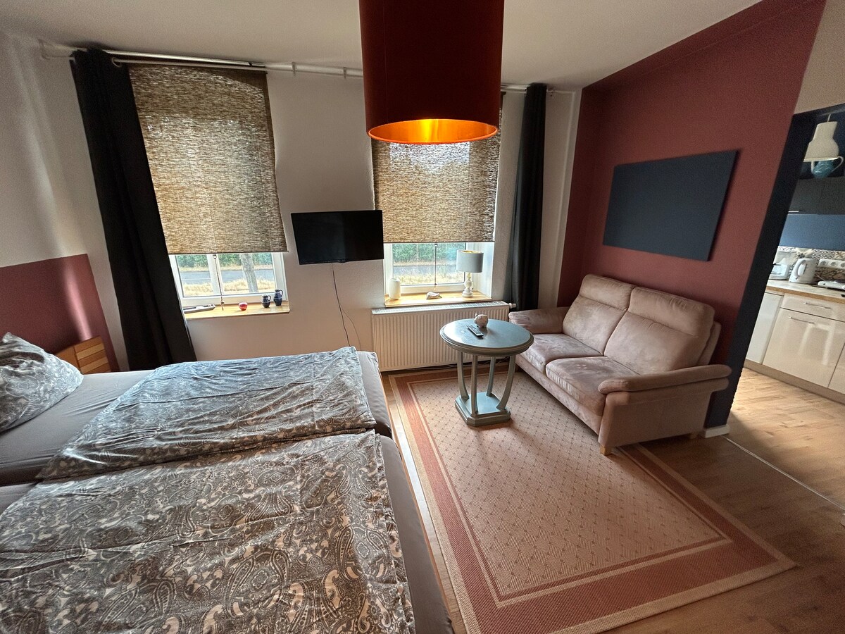Die Wohnung befindet sich im Erdgeschos und bietet Platz für 2 Personen. Das Bad ist ausgestattet mit großer bidentiefer Dusche, Infrarotkabine, Fußbodenheizung. Die Küche ist vollwertig ausgestattet Kaffemaschine, Toaster, Wasserkocher. In dieser integriert ist auch der Waschtrockner. Die hohen Decken und großen Fenster ergeben ein tolles Raumgefühl, welches durch moderne LED Lampen unterstrichen wird. Dimmen Sie die Räume oder stellen Sie ihre Lichttemperatur nach Wunsch ein.