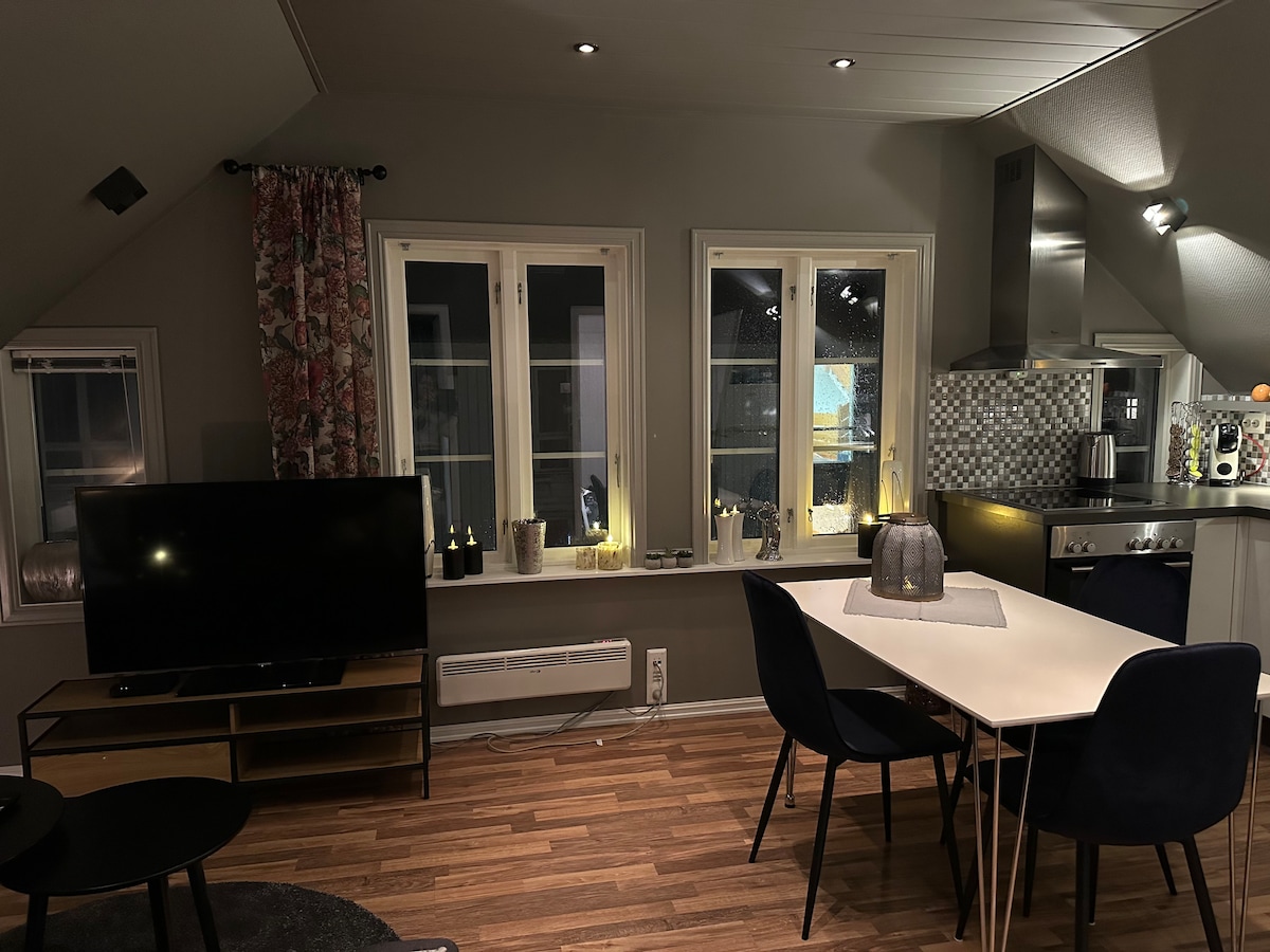 Sentral, innholdsrik leilighet med 1 minutt gange til sykehus, sentrum, busstasjon, høyskole. Nyoppusset våren 2023, og fremstår som ny, moderne og koselig. Leiligheten ligger i 3 etasje i familievillaen. Vertene bor i etasjen under. Leiligheten inneholder stue, soverom kjøkken, bad, vaskerom og gang.
