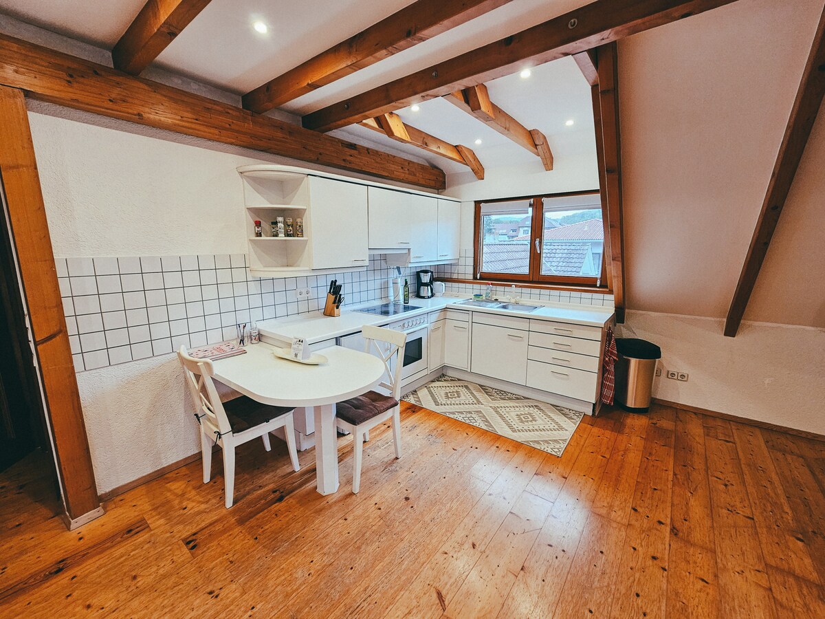 Cozy, private studio with private entrance, kitchen / dining area, bathroom and bedroom with a double bed. The house is located in the countryside with a view of Zell im Wiesental. Until there is no 5 minute walk. Zell lies at 426 m and is framed by hills and mountains to over 1000 m altitude. It is a small town with good shopping and good connection to bus and train. You can borrow a bicycle for small tours for 5€ / day