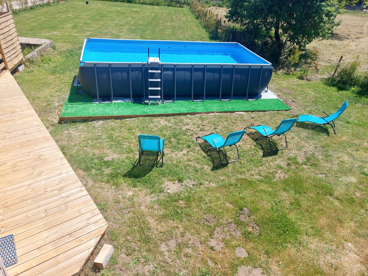 Equipped with a high-end 3-seater jacuzzi and a swimming pool (open from June to September), our accommodation will also seduce you with its 2 bedrooms with very good quality bedding and its living room with TV including Netflix. The sofa is convertible, it will offer you an extra bed for 2 people. Our house also has a Wi-Fi connection and a dedicated office space, ideal for teleworking. Close to downtown St Junien and Oradour-sur-Glane.