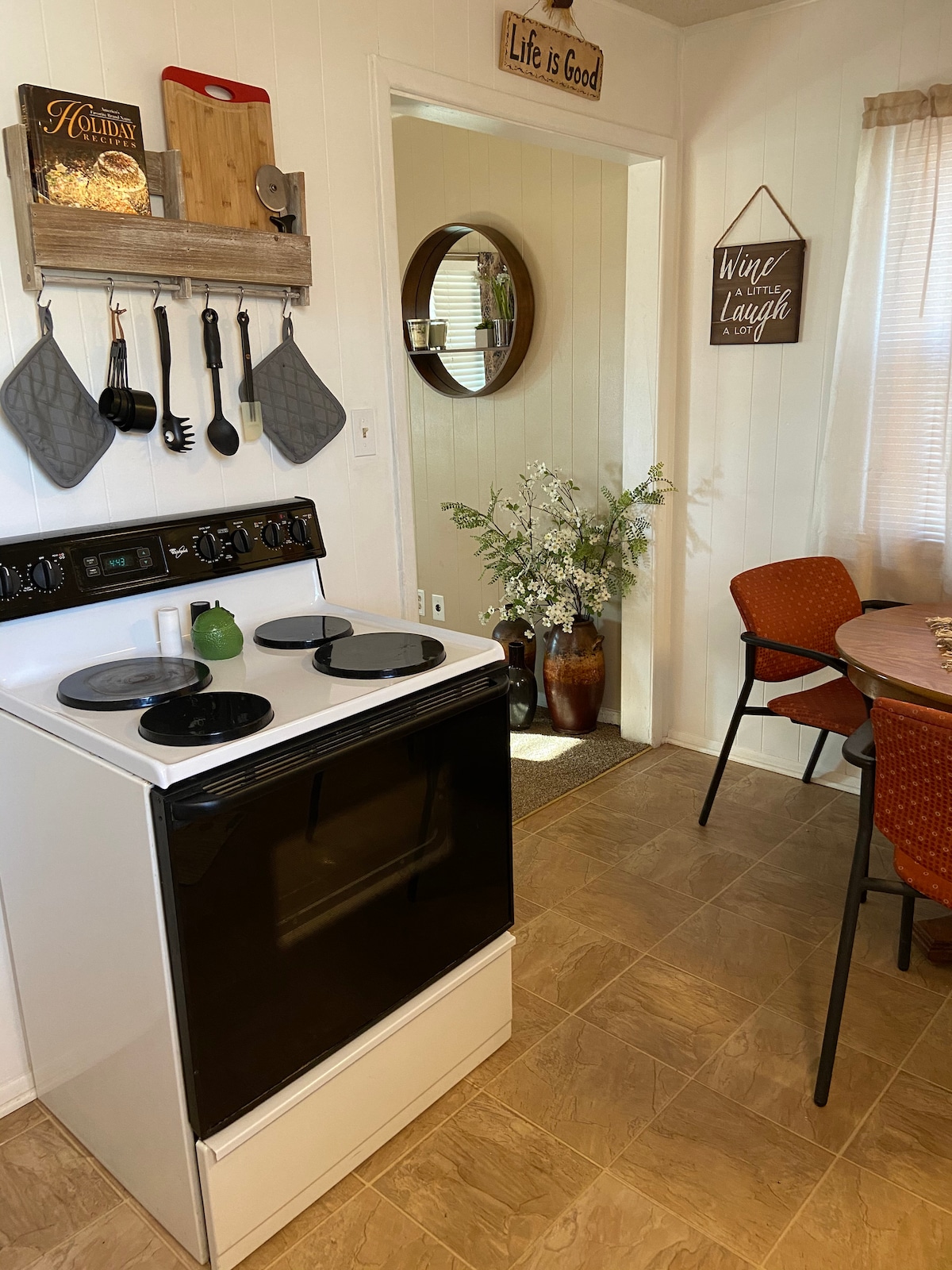 Come stay at a piece of Kechi history! This cottage was once an antique shop when Kechi was named the Antique Capital of Kansas. In the early 2000's it was renovated into a charming 2 bed 1 bath home. Nestled in a peaceful neighborhood just far enough out of the city. Come experience small town living and all Kechi has to offer. Quiet mornings and fun-filed afternoons await you at this unique experience. Full kitchen, spacious rooms, cozy front and back porch, family games & a coffee bar!