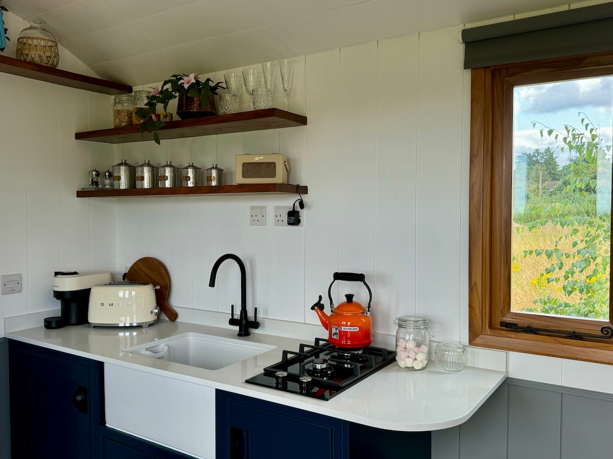 This beautiful bespoke-made sheperd’s hut is located one mile outside the charming market town of Chipping Norton. Chipping Norton is a hub of activity with a bustling well-stocked bookshop, cafés and restaurants. The sheperd’s hut is a quiet haven, equipped with a wood burning stove, mini oven, a power electric shower, underfloor heating, cosy armchairs and a king sized bed. With its beautifully appointed linens and furnishings our shepard’s hut is the perfect base for your next break.