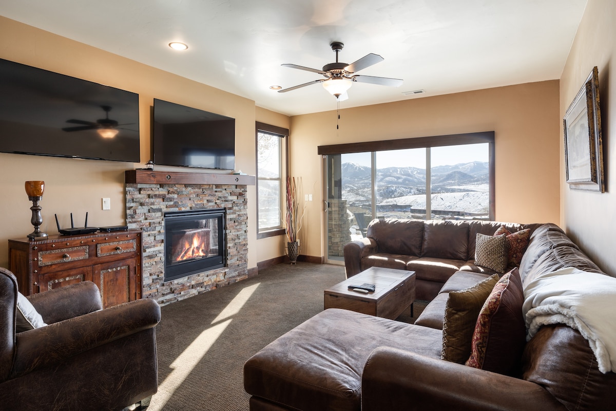 This stylish condo has stunning views of Deer Valley and Park City ski resorts minutes away, overlooking the Jordanelle Reservoir and Upper Provo River, in a new luxury home community called Benloch Ranch. Sit in the private 7 person hot tub or outdoor Finish sauna, taking in the magnificent views, even do yoga outside on the deck, or relax after a day of skiing, hiking, biking, fly fishing, paddleboarding on neighborhood ponds or nearby lake, or other Park City area activities.