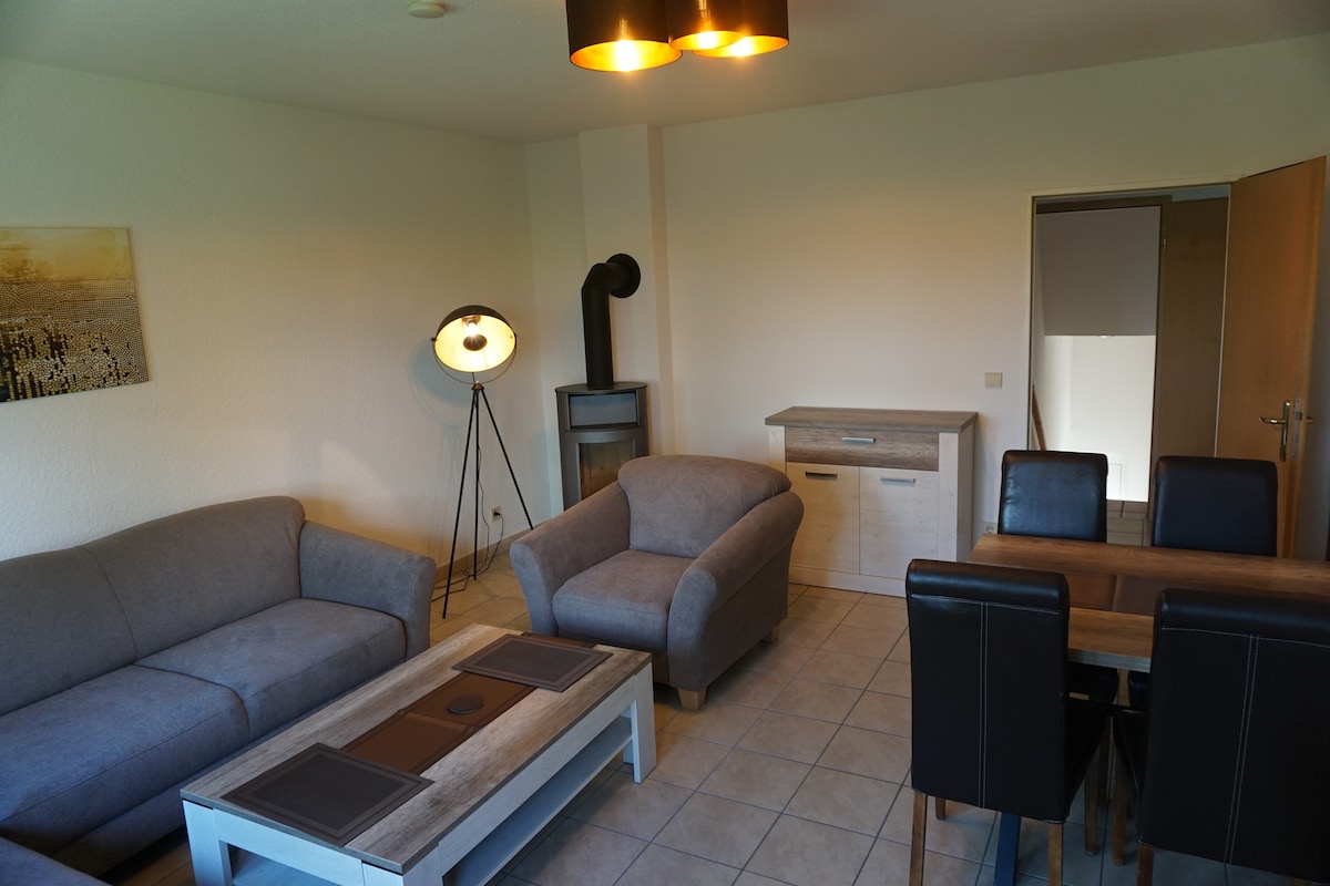 Dear guests, The apartment can accommodate up to 4 people at approx. 50 m²: -bedroom with double bed - Living room with pull-out sofa bed - bathroom with shower (small) - Fully equipped kitchen (fridge, stove/oven, dishwasher, microwave, kettle/filter coffee maker, dishes) - Separate entrance The apartment is divided into first floor and upper floor. Non-smoking apartment / pets are allowed