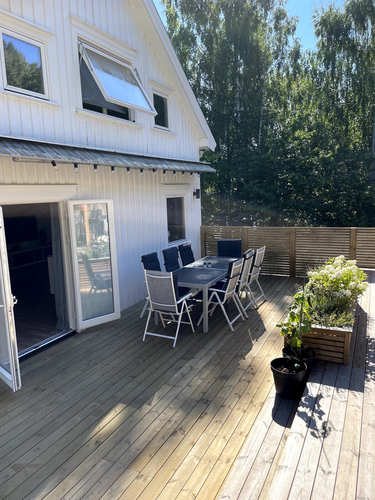 Gratis parkering 50 m fra huset. Huset er delikat oppusset og har rikelig med sengeplasser. Åpen stue-og-kjøkkenløsning med spisebord og sittegruppe, et soverom med dobbeltseng, bad med varmekabler og dusjkabinett og eget vaskerom. I andre etasje er det to store soverom og enda et bad med varmekabler og dusjkabinett. Fra stuen i første etasje går du rett ut på en platting med stort langbord og rikelig med sitteplasser. Sengetøy og håndkle kan leies for 150,- pr sett eller ta med selv.
