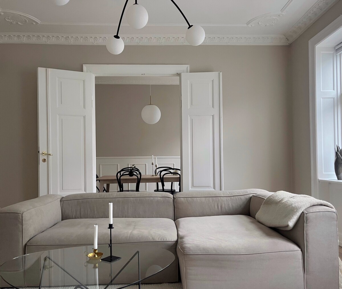 Keep it simple at this peaceful, luminous, and stylish place, which is very close to Copenhagen's most beautiful beach, wonderful parks and nature, excellent restaurants, cafes, and shops. Ideal for someone while looking for a more permanent place to live, or for travellers looking to visit Copenhagen and its most exclusive surroundings. The apartment has a large living room/kitchen with all amenities, washing machine, two bedrooms, and a stylish bathroom with floor heating.