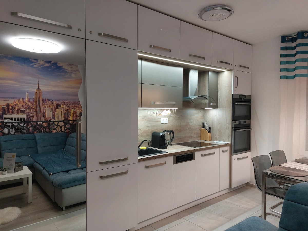 Lean back and relax in this quiet, stylish place. 52 sqm 2 bedroom apartment with living room, bedroom, fully equipped, gives you the feeling of home. In summer, the 2 air conditioners provide a pleasant cool temperature, in winter the central heating from the individual boiler provides a pleasant warmth. Bookable for a minimum of 5 nights. The accommodation is on the 3rd floor, there is no elevator. To book an accommodation, you need to scan the following: name, phone number, email address, address, ID document through an application.