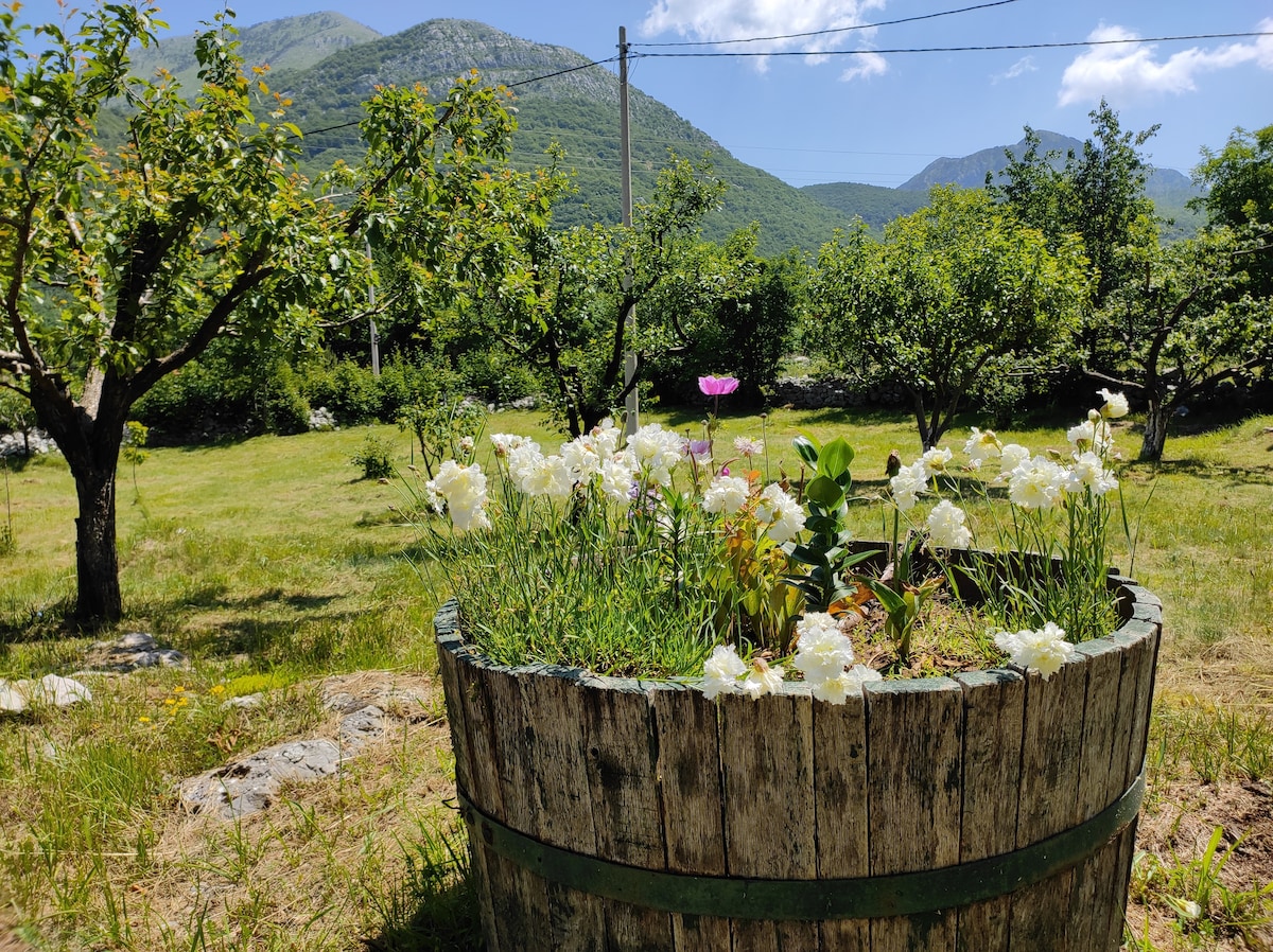If you want to getaway from the hustle and bustle of the city and experience a big adventure at the picturesque mountain surroundings, my cosy cottage is right for you. The house is nestled at the entrance of the Nature Park Orjen, Via Dinarica trail, at an elevation of 1000 m above sea level. In vivid landscape, surrounded by beech trees, we offer to enjoy private orchard on a huge estate, just a 35 minutes car ride from Herceg Novi and seaside.. Feel free to join in an exciting Orjen journey