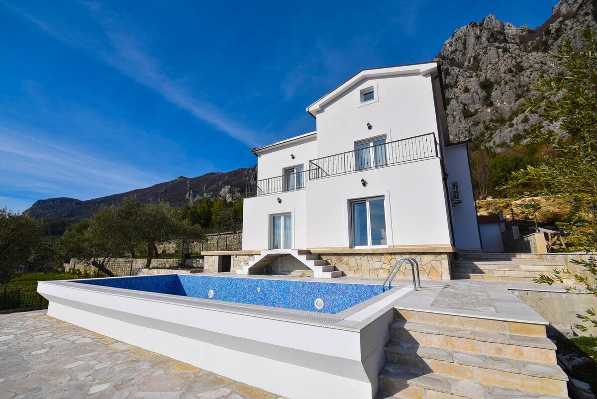 The house was built specifically to meet guests in 2017. All furniture, accessories, appliances are brand new. Kitchen is available for cooking and beverages. The living room has amazing views and access to the terrace and pool. The second floor has bedrooms, each with a private en-suite bathroom with a toilet. The house is on a mountain with an incredible view of the bay and the sea, while the serpentine can be reached by car in just 10 minutes by car.