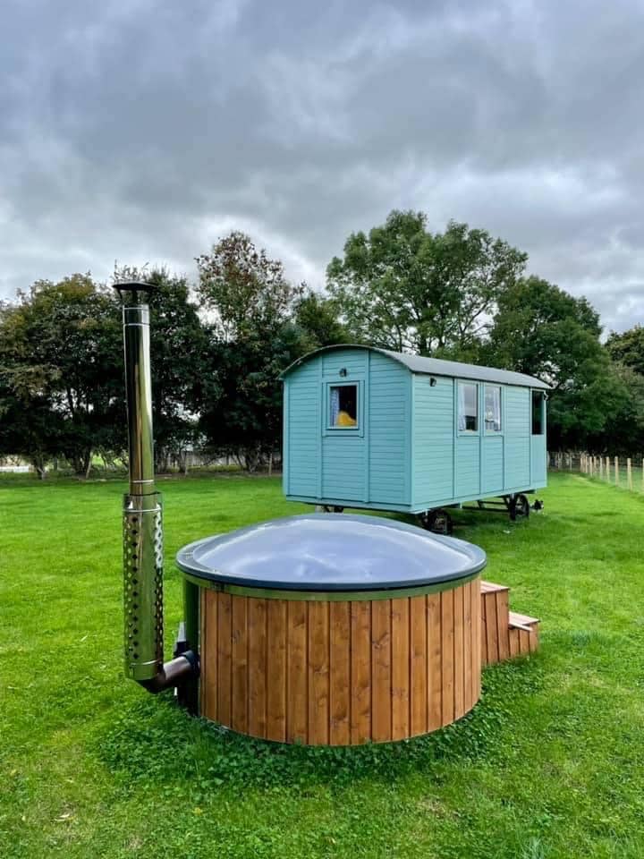Honeysuckle shepherds hut with hot tub on farm
