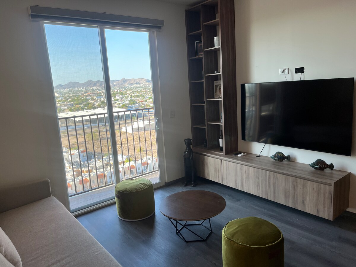 Enjoy Hermosillo from the 19th floor in this elegant apartment with panoramic views over Blvd. Kino. Ideal for business trips, executive stays or couples' getaways. It has 2 bedrooms, 2 full bathrooms and spacious and modern spaces. The development includes a pool, fully equipped gym, coworking space, bar, children's area, pet area and barbecue area. Enjoy a comfortable and modern experience in one of the city's most exclusive towers.