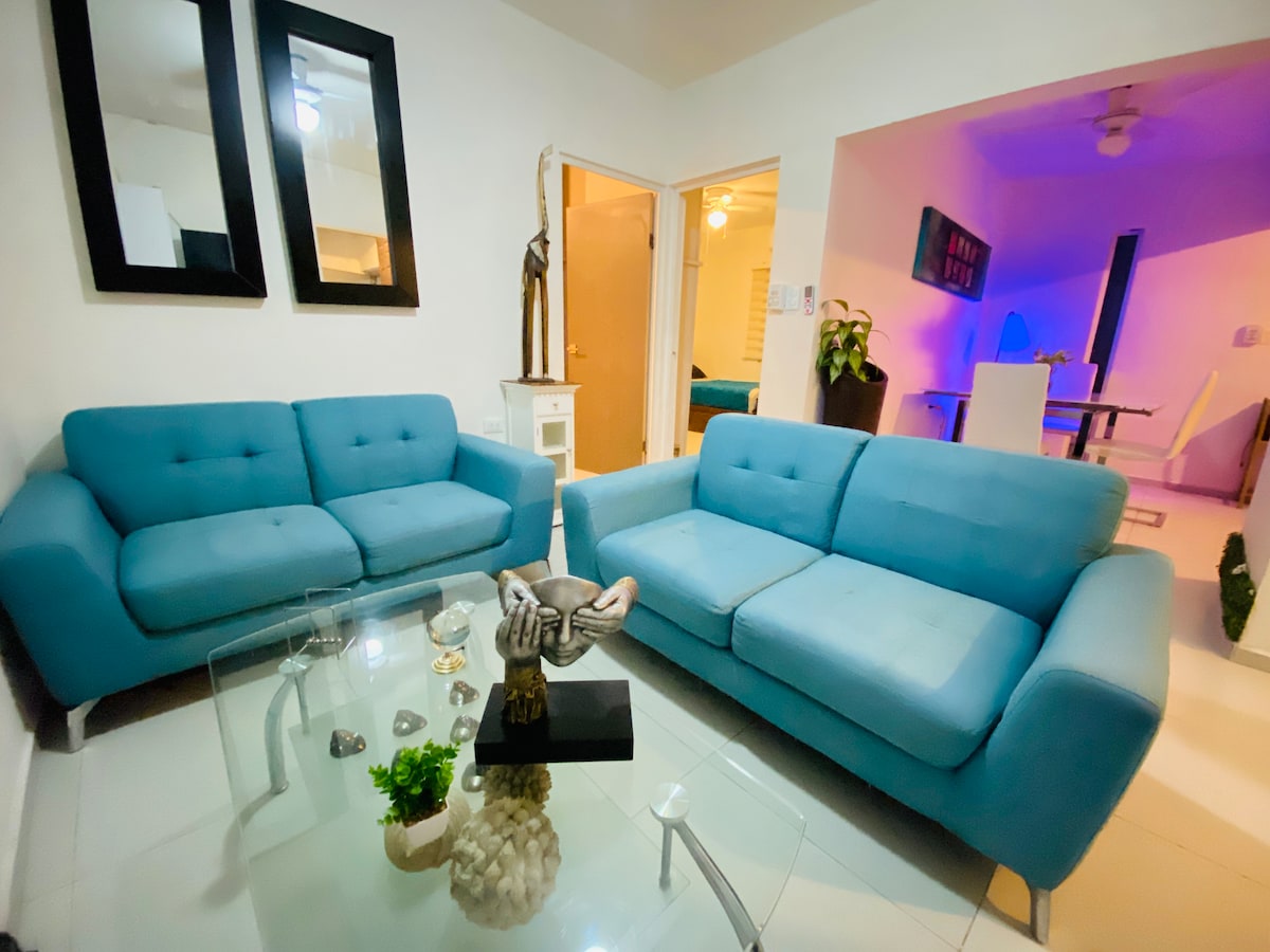 The apartment is on the top floor, it is unique, very safe and centrally located. Access to expressways, shopping malls, movie theaters, restaurants, shopping plazas. It has a built-in kitchen, a large and comfortable living room, a bathroom with a separate toilet area, and a fully furnished bedroom with a water heater and mini-split air conditioning in the living room and bedroom. It has a terrace. Access to the second floor is via a spiral staircase.
