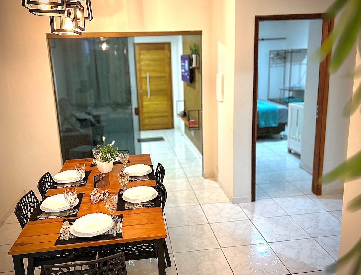About this place Feel at home and safe in our space, which follows strict cleaning protocols. The newly renovated house has 1 suite and 2 bedrooms, all new and designed for your comfort. The decor is cozy and functional, ideal for your stay. Located in a central neighborhood, it offers easy access to the city's main tourist attractions. In addition, it has a garage and electronic gate for your convenience.