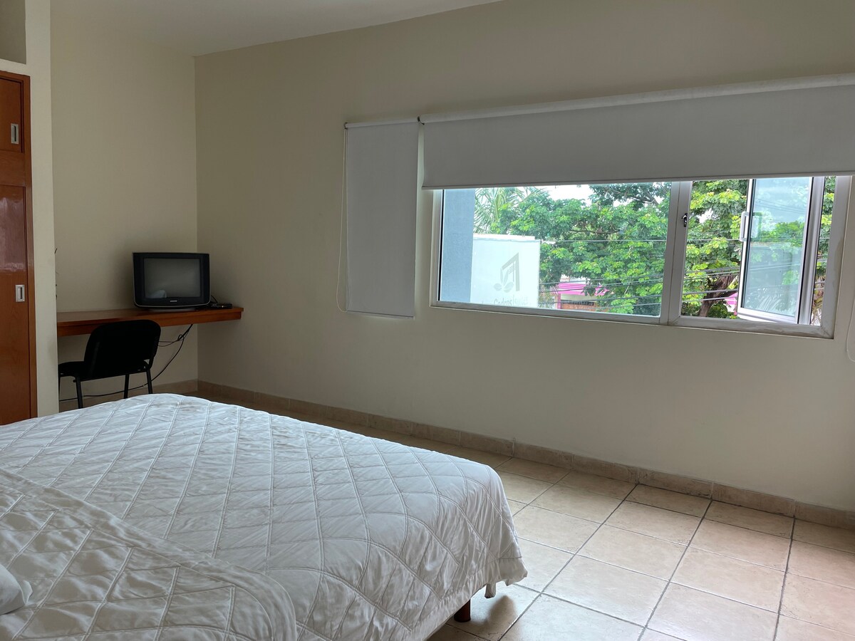 Keep it simple at this peaceful and centrally-located place. The apartment is in a 4-story building (ground floor, 1st floor, 2nd floor and 3rd floor). The apartment is on the second floor, and has covered parking for 1 car. Located just 1 block from the beach, 5 minutes from the Veracruz Aquarium and 5 minutes from the historic center. Two blocks from the Spanish Charity and Fernando Pazos Sosa Park. You can live in a very safe, pleasant and TOURISTY area.