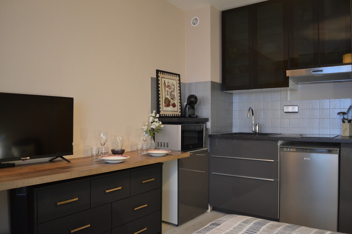 Discover this studio and enjoy a breathtaking sea view at sunrise and sunset for unforgettable dinners on your enclosed and heated loggia. Here, a small, recently renovated and fully equipped kitchen awaits you. The brand new bathroom and toilet add a touch of comfort to your daily life. Transform your moments of rest with a real cozy bed and a practical office area. Stay connected with high-speed Wi-Fi available throughout the studio.
