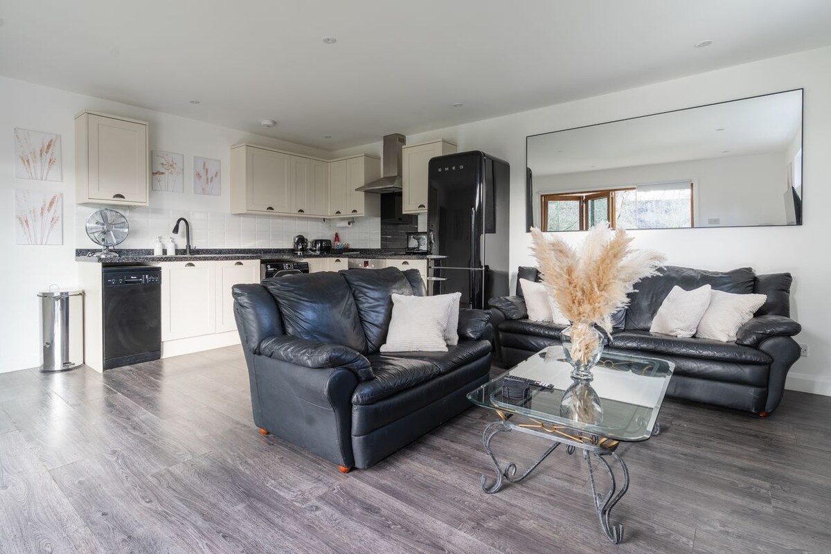 Modern living blends style with practicality in this spacious, open plan holiday lodge with a sofa bed in the lounge area.