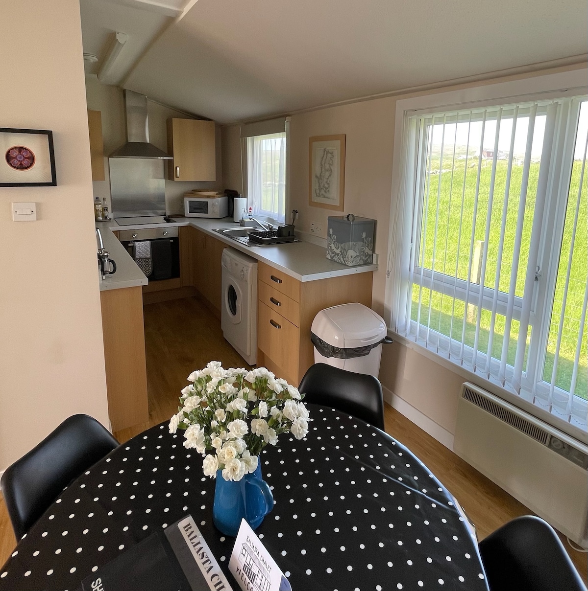 Modern, newly refurbished chalet in a quiet area of Baltasound. The property is light, airy and surprisingly spacious. It’s in a perfect location for exploring Unst, with its many beaches, walks and interesting places to visit, as well as the neighbouring islands of Yell and Fetlar. Conveniently located near shops and within walking distance of the leisure centre. The chalet has many features to make it more accessible including a ramp, accessible toilet & shower if required. Free Wi-fi.