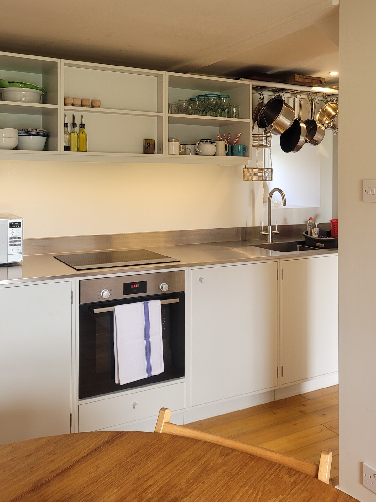 The Peerie Neuk is a sustainably built tiny eco home with all the comforts of a cosy house just a bit tinier! There is a double bed and fold out sofa, suitable for one adult or two children. There’s is a small kitchen with hob, kettle and little fridge (large enough for two bottles of prosecco 🤣). There is a wood burning stove with oven. The oven will keep things warm. There’s on demand hot water, shower and compost toilet.