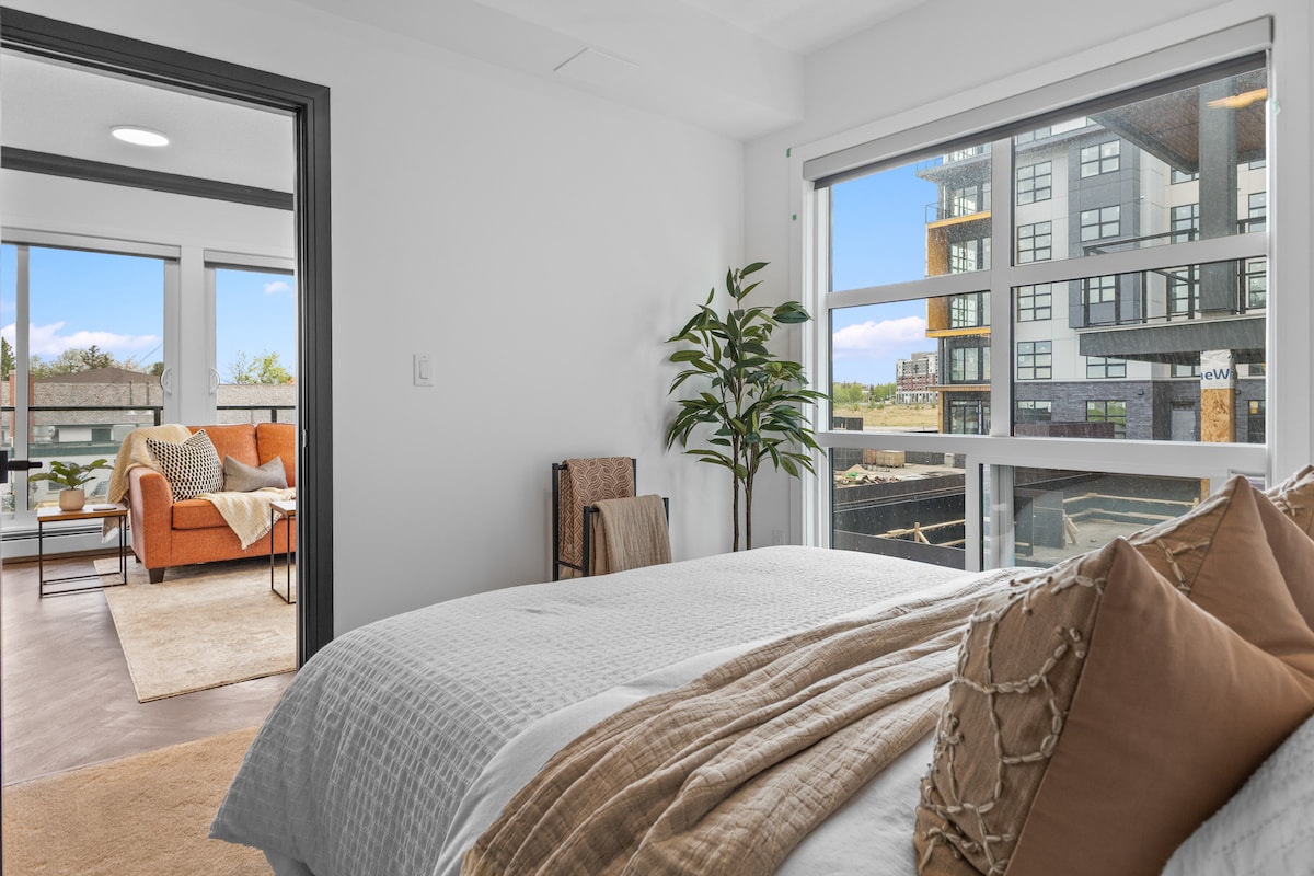 Wake up in a bright, modern 2-bedroom garage suite set above a quiet laneway in SE Calgary. Built in 2023, this second-floor hideaway pairs clean design with everyday comforts: a fully stocked compact kitchen, a full bath with tub/shower, and in-suite laundry. Two queen bedrooms comfortably host up to 4 guests. Perfect for work trips, couples, or small families exploring Inglewood, Ramsay, and the river pathways.