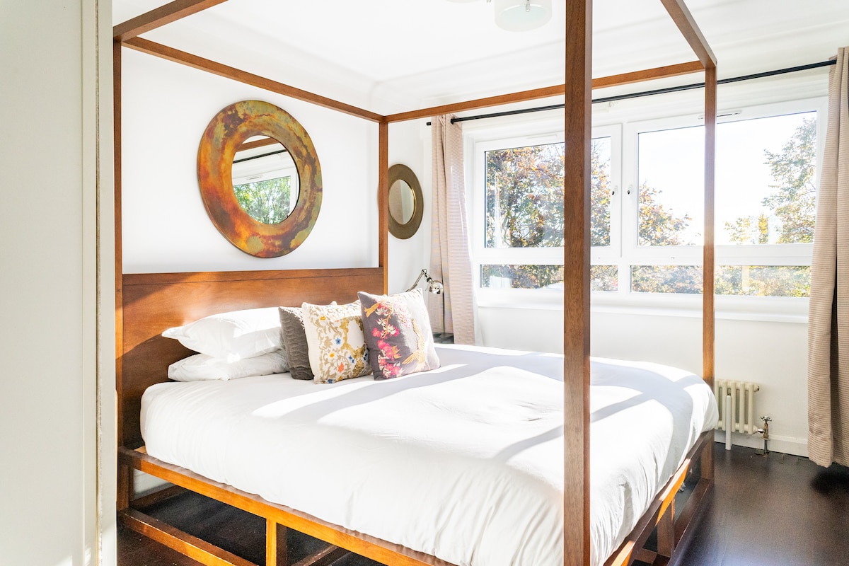 This beautiful flat has 2 dbl bedrooms & 2 sgl mattresses surrounded by original art, an aquarium, and the most amazing views of the city with spectacular sunsets. South and west facing, it's filled with bespoke furnishings and lush plants. It's ideal for artists & art lovers to relax or work, providing the perfect backdrop for an inspiring London stay. It's in a peaceful residential part of vibrant Hoxton, surrounded by excellent galleries, parks, clubs, restaurants, boutiques, and markets.