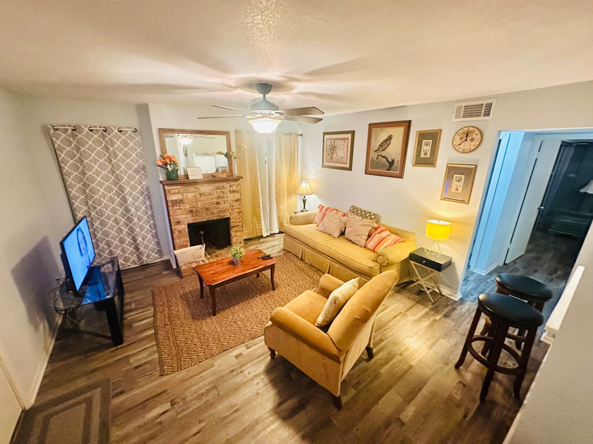 Adorable ground floor updated condo centrally located within minutes to Cedar Springs/Oaklawn, Uptown and Downtown. Plus walking distance to groceries, fast food, fine dining and many convenience stores. On-site Parking Easy Connect (QR code) fast Wi-Fi Spacious Outdoor Patio Coffee Maker Blender King Size Bed Queen Size Sofa Bed Smart TV with streaming apps Smart Thermostat Washer and Dryer Iron and Ironing Board We also welcome long term stays! Guests do not have access to the mailbox.