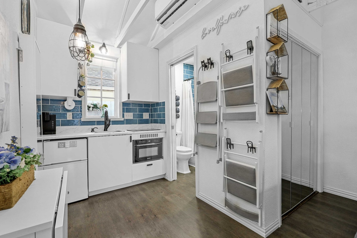 Kick back and relax in this brand new calm, stylish studio. Located off of Interstate 35, this is a prime location for taking a quick trip down to Dallas or to the UNT college campus. Our guests will enjoy a private unit with a walk in shower, full size appliances, in-unit washer and dryer, and complete blackout shades for those that work nights or like to sleep during the day. This space would be ideal for parents visiting their children at UNT or traveling healthcare professionals.