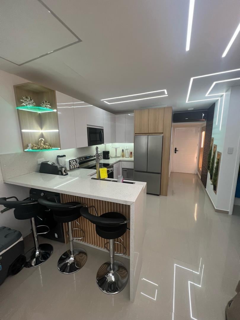 Create unforgettable memories in this unique and family-friendly accommodation. Spectacular view, 2 bedrooms, 2 bathrooms, sofa bed, equipped kitchen, 3 air conditioners, 3 Smart TVs, satellite WiFi, washer and dryer. It has a gym, grills, volleyball court, Creole ball court, tennis, children's playground, large 3,200-meter pool, jacuzzis, soda fountain, and beach furniture (chairs, tables and sun loungers)