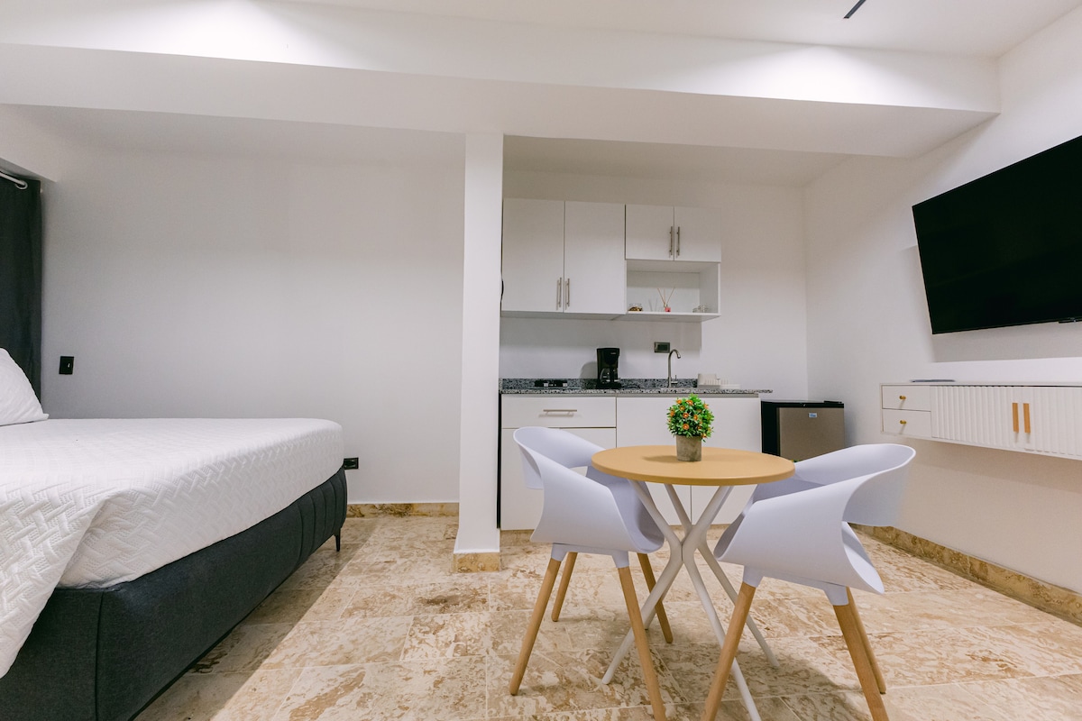 Private room inside our Arena apart-hotel in Bávaro. Enjoy a quiet and comfortable space with a Queen bed, air conditioning, TV, WiFi, and a mini fridge. 📍 8 minutes from Downtown Punta Cana, with quick access to banks, shopping malls, restaurants, and main supermarkets. ✈️ Approximately 15 minutes from Punta Cana International Airport.