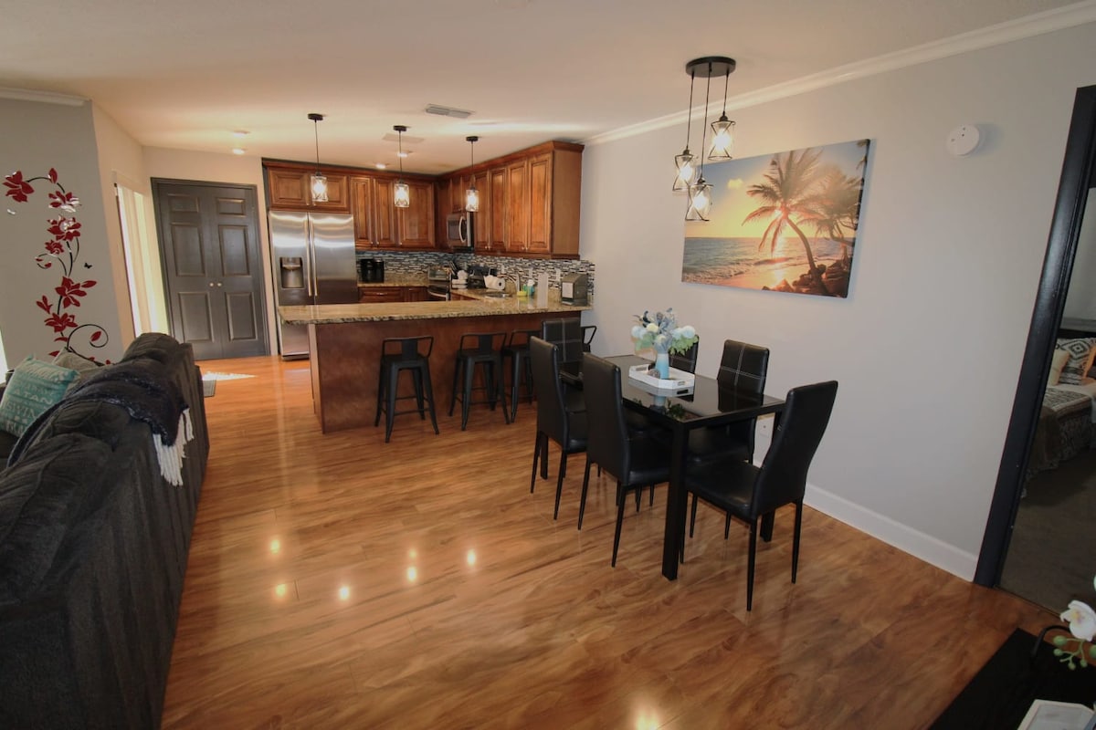 You will fall in LOVE with area being so close to everything. Bright, open-concept design Suite with a complete kitchen, full bath, A/C, WiFi (100mbps), you have a private entrance and all amenities of home. New queen size bed. You are 15 min from St Pete Beach and 10 min to downtown St Pete. You have off street parking. Very safe and quiet location. Easy check in via lock box. You have beautiful gardens surrounding the property and Amazing deck. We have plenty of secret spots to recommend.