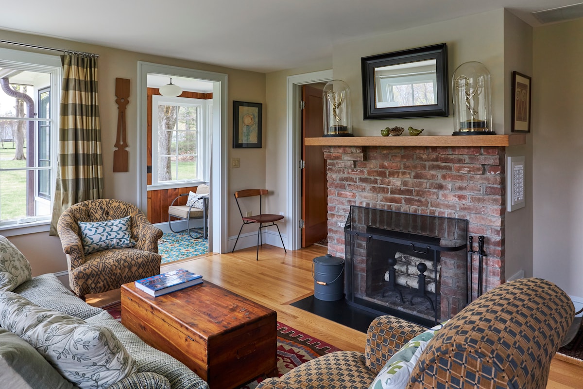Hawthorne is a renovated 1920s farmhouse set on 11 acres of pastoral fields, forest and pond, featuring stylish, comfortable, art-filled white and green rooms. Take in the view from the sun porch, nap on the big L-shaped sofa, share cocktails in the field overlooking the valley, and cozy up by the fieldstone fireplace at night. A fully equipped house, with Watson Kennedy goods throughout. Professional design, high quality kitchen equipment and accoutrement, linens, blankets and comforters, with Malin+Goetz & Molton Brown supplies make this your luxe country getaway. Now with unlimited WiFi. The perfect getaway for one to three couples, Hawthorne offers multiple rooms and lots of space for maximum relaxation and taking in the country. >> Enjoy the view from the sun-drenched front porch. >> Nap on the big L-shaped sofa in the living room. The two extra deep Restoration Hardware couches are 7’ long; they also serve as larger than usual single beds >> Cozy up with a book by the fieldstone fireplace in the fully screened back porch (with glass panels in Fall and Winter). >> Share sunset cocktails in the Adirondack chairs up in the field overlooking the valley. >> Cook in the well-equipped kitchen. >> Eat your candle-lit dinner in the dining room overlooking the valley. This is a fully equipped country farmhouse, with Watson Kennedy goods throughout the home. Professional design, high quality kitchen equipment and accoutrement, linens, blankets and comforters, and Malin+Goetz bath supplies make this your luxe country getaway. You will be the only guests in the house, with no one else on-site. Lots of hiking in the valley and nearby conservancy areas, biking on country roads, cross-country, downhill or snowshoe during the snowy months, or take in all the antique shops and history year-round. This peaceful property is minutes from the Hawthorne Valley Farm store, 20 minutes to the world-class food and vintage mecca of Hudson, and 30 minutes from the culture and history of Tanglewood, Jacobs PIllow and the Berkshires. For recreation there is hiking in the valley and nearby conservancy areas, biking on country roads, or cross-country, downhill or snowshoeing during the snowy months. Hawthorne is a 2-hour drive from NYC or a 2-hour Amtrak ride from Penn Station to Hudson, and then a 20 minute drive by car or taxi. The house is conveniently close to the Taconic Parkway, while set in a peaceful and quiet valley.