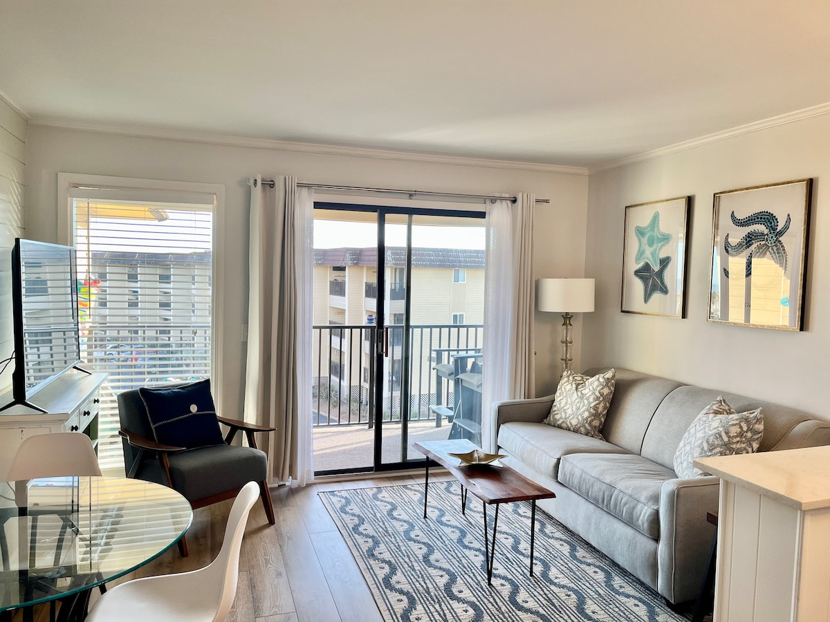 ✨Top 10% Airbnb Home✨ BIG OCEAN VIEWS FROM LIVING ROOM & BALCONY! Oceanfront Building Steps to Beach Boardwalk, Pool & Tiki Bar! FREE Pickleball, Tennis, Gym & More HGTV Featured Decorator 100% NEW Luxury renovation KING BED + 75" & 65" Smart TVs Expanded Bedroom Luxe Marble Kitchen & Bath Quiet Top Floor Well-designed 540 sq. ft. Elevator Beach Chairs + More RESORT: Oceanfront Pool & Bar & Grille Restaurants Sports Bar 4 Beach Boardwalks Bike Rental Gated 24/7 Security FREE Island Trolley Stop