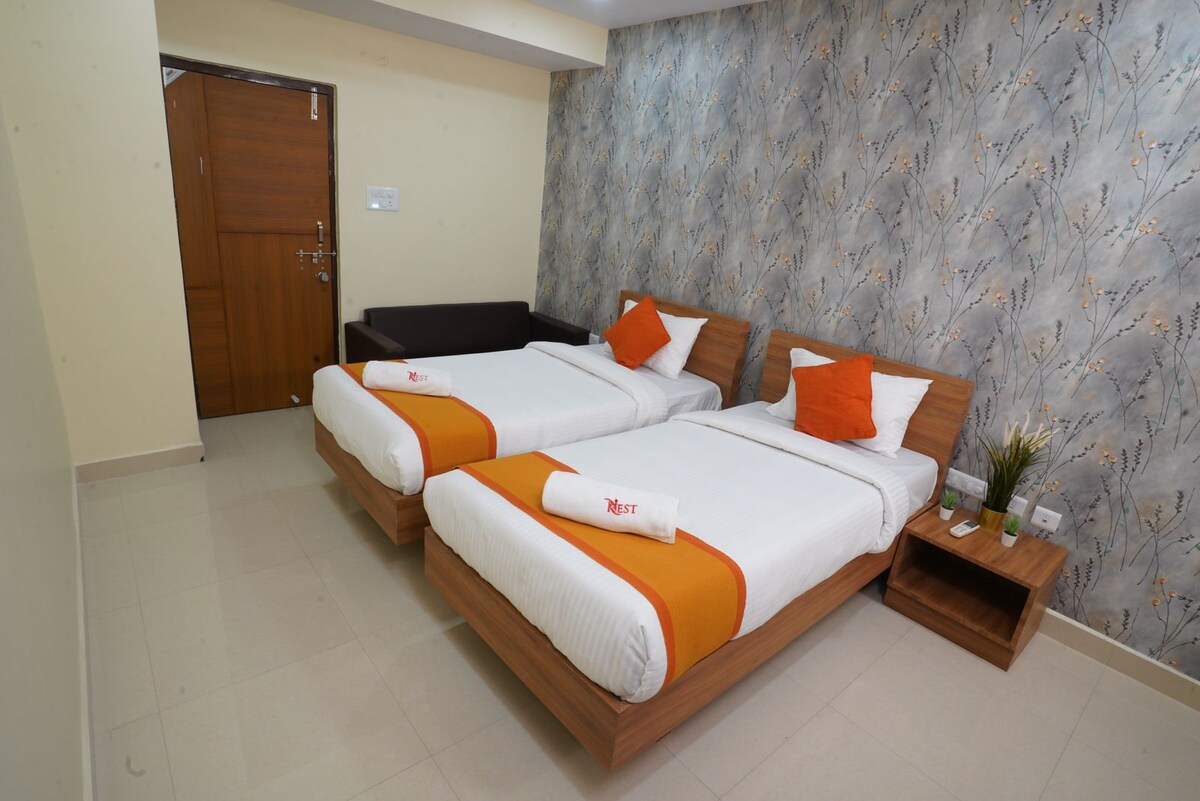 Welcome to Wazirs' Residency Furnished 2BHK Stays. This fully furnished apartment offers a comfortable living room, cozy bedrooms, a well-equipped kitchen, and clean bathrooms. Amenities include AC, Wi-Fi, and in-unit laundry for a hassle-free stay. Located in a desirable area, it's ideal for families, medical visitors, and working professionals. Complimentary breakfast is included during your stay. Note: A refundable security deposit of ₹2000 is required and will be returned after checkout.