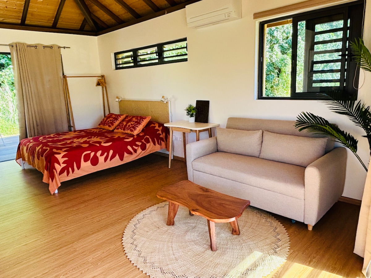 ⟩ Just 5 minutes by car from the airport and a 10-minute walk to downtown Papeete (or 5 minutes by car). In a quiet neighborhood, enjoy the cozy, modern, and Tahitian 45 m² Fare Manua with balcony: ⟶ Renovated in October 2024; ⟶ Orthopedic mattress and quality sofa bed; ⟶ Free and secure Wi-Fi at 20mbps; ⟶ Air conditioning; ⟶ Secure building with elevator; ⟶ Close to Papeete market, waterfront, and shops; ⟶ Free private parking. ⟩ Book your stay in Tahiti now!