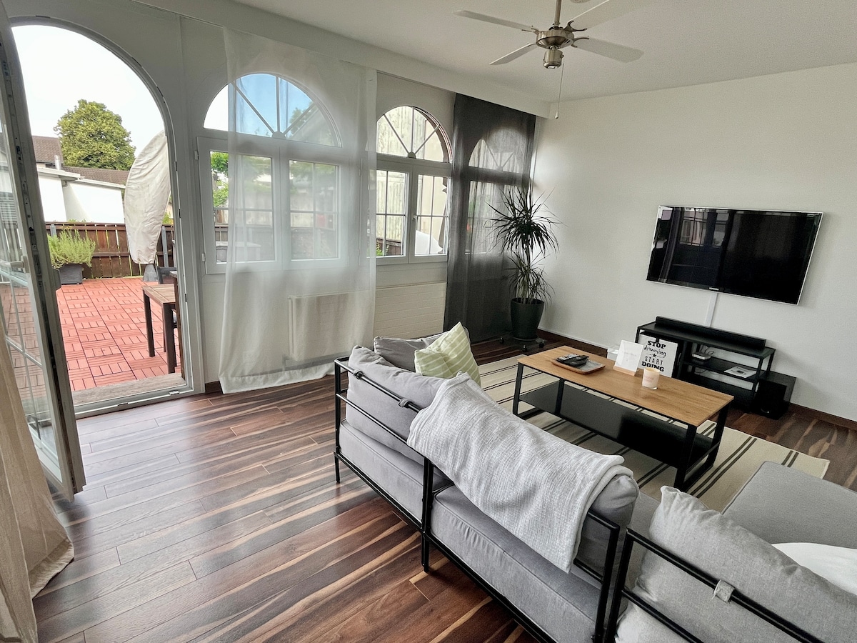 Sunny room in a quiet residential area with toilet/shower. Small kitchen, fully furnished. Covered, sunny seating with electric grill and great views. Private entrance, parking in front of the house. Approximately 200 m to the bus stop. Our modern single-family house is easily accessible from Lucerne main station in 12 minutes by bus.