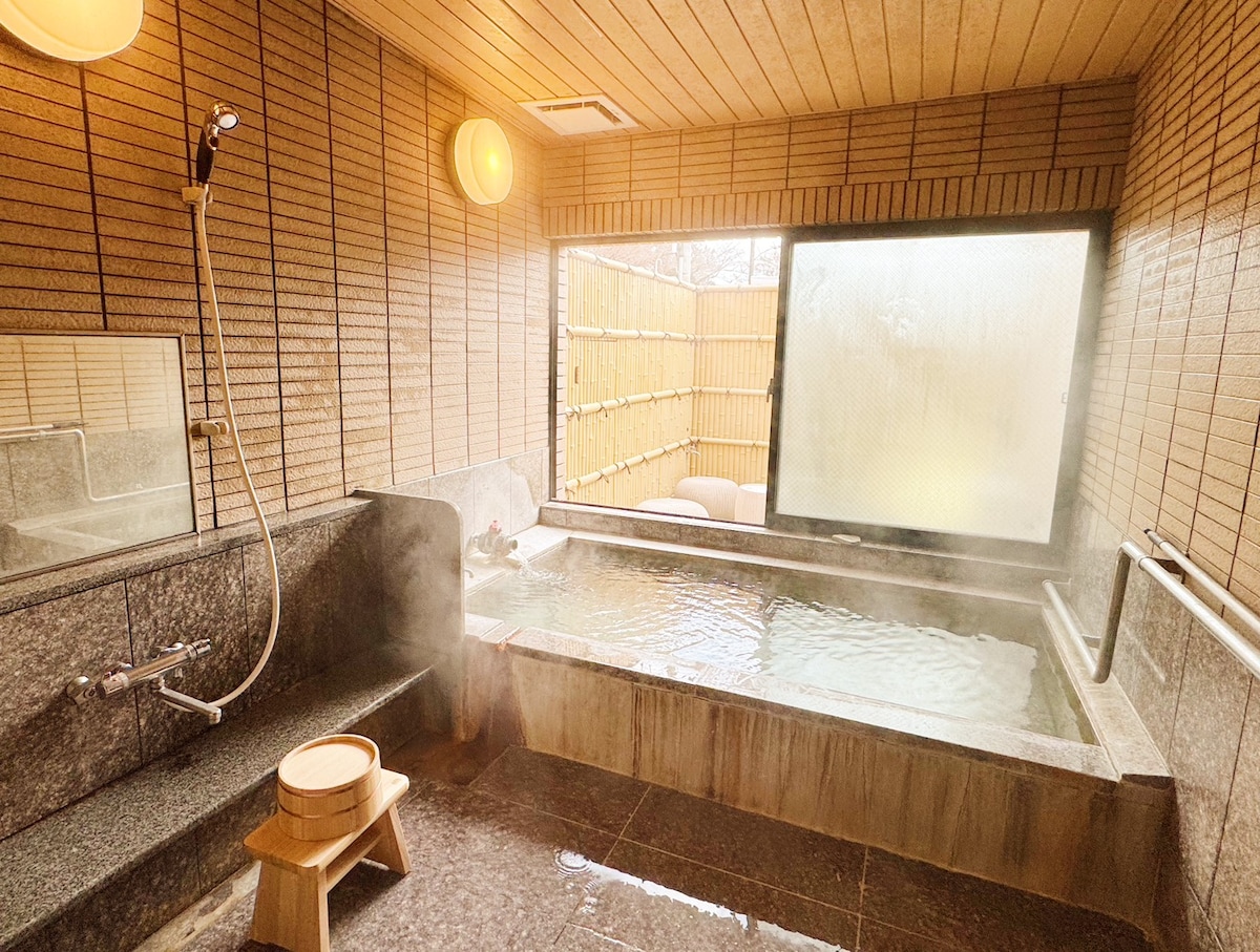 Located in a tranquil residential area, this private villa boasts a 100% pure natural hot spring, ensuring a unique and comfortable stay. The local host offers valuable dining and travel tips. Fully compliant with the Ryokan Business Law and safety standards, it's ideal for families, providing a secure setting, parking for two, free Wi-Fi, Netflix, and winter-ready underfloor heating. With four well-appointed bedrooms and a fully equipped kitchen, guests are guaranteed a relaxing experience.