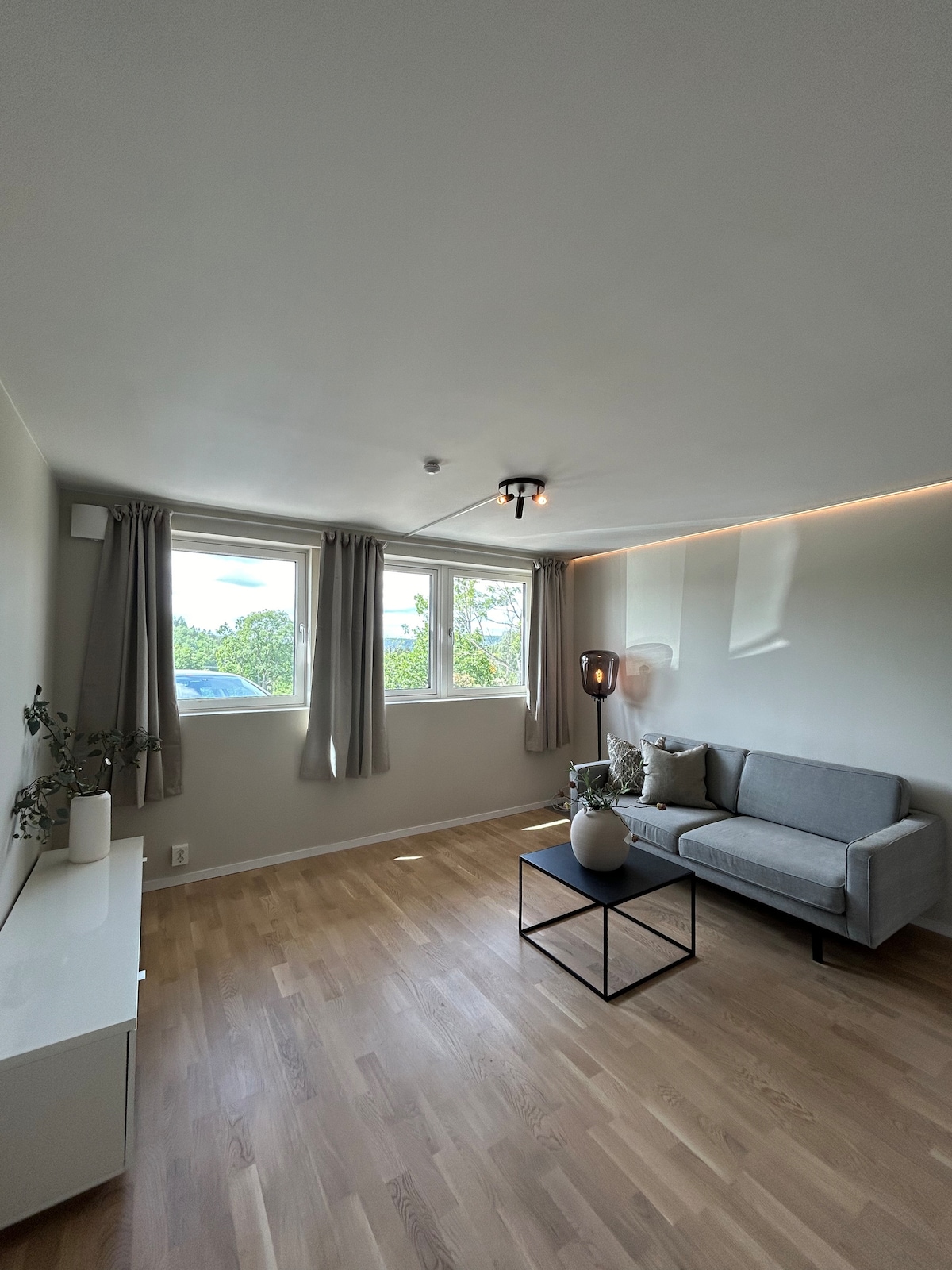 From this perfectly located residence you have easy access to everything. The lake, harbor, sauna, library, cafes, shops and train station. The unique thing about the apartment: Soothing color combinations combined with creative expression. Harmonious and homey apartment where you can find peace and give yourself recreation. Good views of the fjord and sky contribute to peace of mind. Piano available for those who want to try. Ice cream machine for those particularly interested. Warm Welcome!