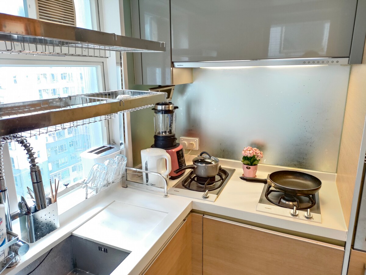 A high rise apartment with balcony & mountain View, in a modern residential property with great facilities, indoor pool (closed seasonally), gym. Fully furnished with a modern kitchen equipment, a luxury bathroom with Italian shower and tv screen. A smart TV in the living room and 4 seats dining table. The location is a perfect compromise between the calm and the lively areas where you will find great restaurants around. 5 min walk from Wanchai mtr, access to hiking trails of HK island.