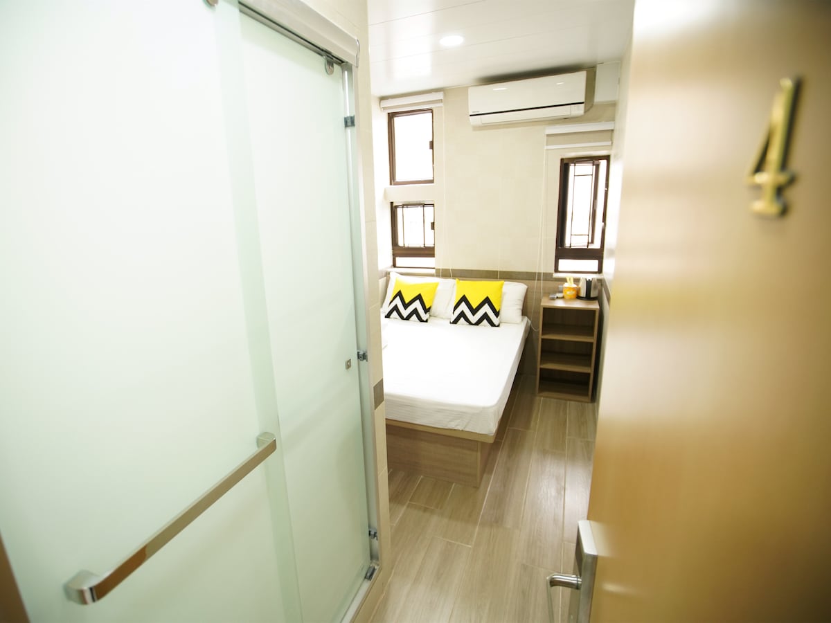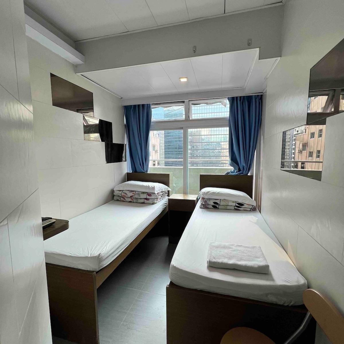 It is a cozy and comfortable room that can accommodate two people. The room is furnished with two single beds, and a study desk. There is a large window that lets in plenty of natural light. The en suite bathroom is equipped with a shower, toilet .This room is ideal for two friends or siblings traveling together who would like an affordable private space to stay.地點優越,前往熱門商店和餐廳非常便捷。
