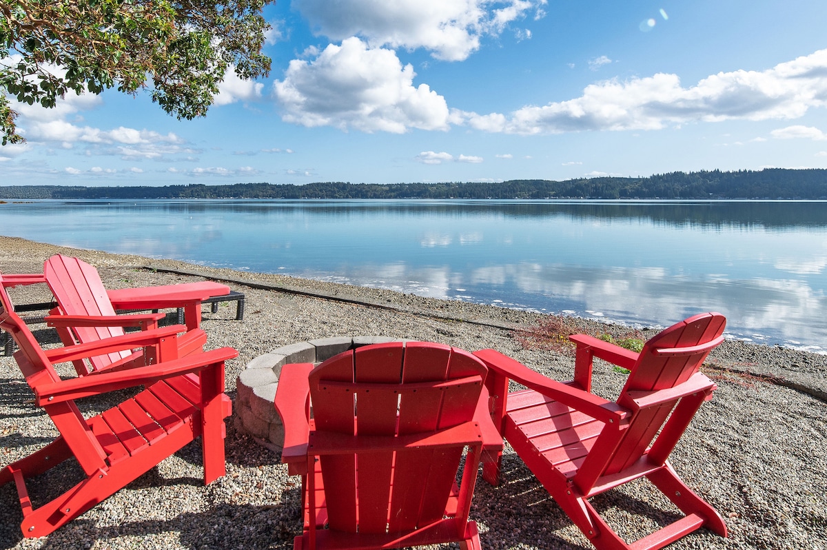 ☼ Private Beach: Firepit, kayak, paddleboard & beach toys ☼ Hot Tub & Deck: Waterfront views from the tub and outdoor spaces ☼ Disco Lounge: Karaoke, TV, games & retro vibes ☼ New Upgrades: July 2025 renovation: bathroom, new management/cleaners, parking, amenities. Escape to Hood Canal Lounge, a newly renovated waterfront getaway with two king bedrooms, a sleeper sofa, and stunning views. Relax in the hot tub, play on the beach, or gather in the funky media lounge for karaoke and movie nights.