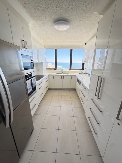 Surfers Aquarius is an absolute beachfront residential apartment building with direct beach access set on 2.5 acres. You will stay on level 29 with unobstructed views. Enjoy a beachfront walk along the newly built Oceanway path. Spacious 2 bedroom apartment with Air Con. Facilities include outdoor and indoor heated pool, tennis, squash, sauna, steam room, spa, gym, BBQ area. Apartment has free internet, 55" Smart TV with Netflix and Bluetooth stereo. Comes with a car space in the garage.