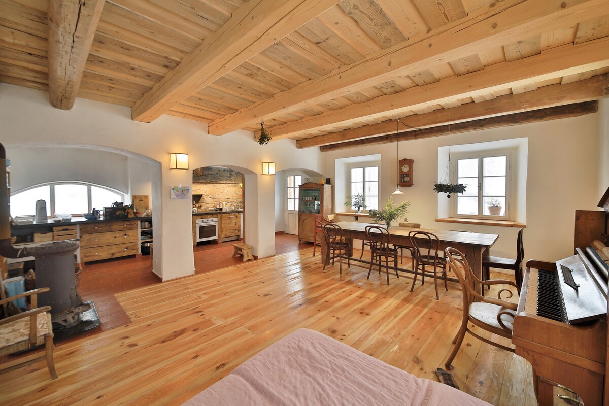 Do you want to disconnect from everyday stress, the Internet, television and work? We offer you a beautiful and unique historical cottage in Českolipsko between Kokořínsko and Český Švýcarskem, suitable for large family gatherings. Adjacent to the building is a garden with mature trees, a fireplace and seating, with an area of 1800m². The house has a unique atmosphere, is comfortable, equipped and is suitable for recreation with friends as well as business stays, birthday celebrations and more...