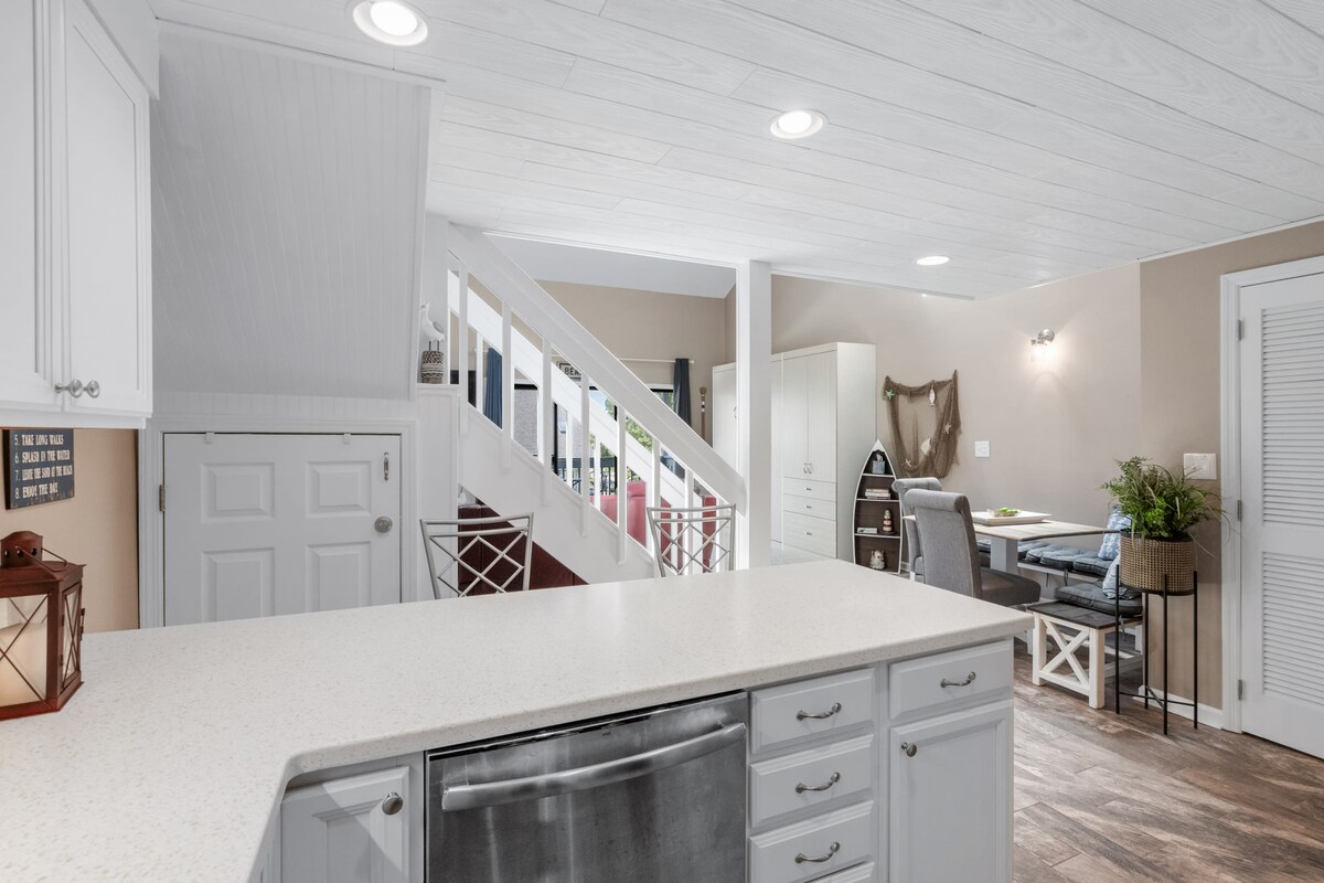 Nestled amongst the oaks, this vacation rental was recently renovated with a bright and modern interior. Great for families and boasting 2 bedrooms, a sleeping loft, and 2 bathrooms, this retreat provides a well-equipped kitchen with high-end amenities, 2 Smart TVs, and an outdoor shower. The historic home in the heart of Myrtle Beach proper is mere steps from the beach. After visiting the Boardwalk and Promenade, return to this dreamy home to relax before another perfect South Carolina day.