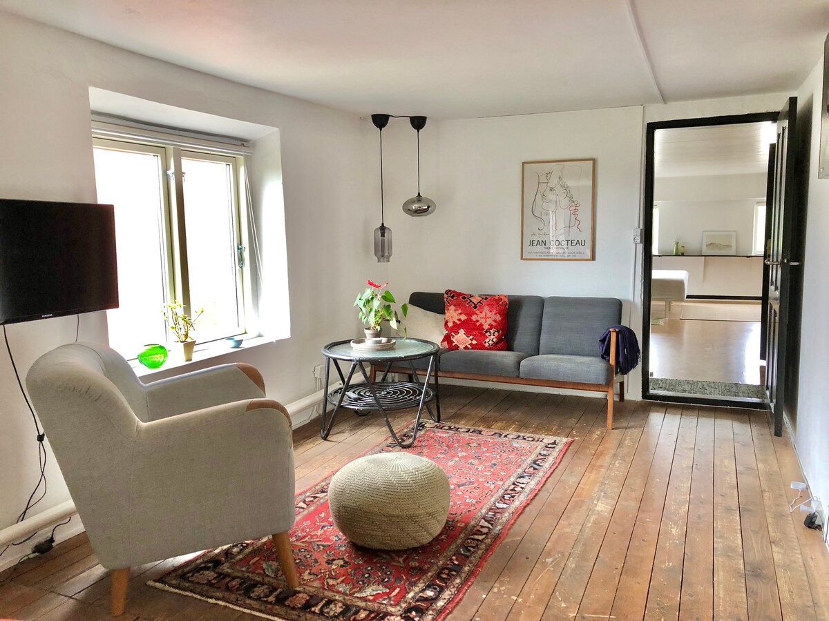 Cozy holiday apartment on the 1st floor in beautiful, older villa. The apartment includes two rooms, living room with exit to small balcony, as well as private kitchen and bath. There is room for 4 people - plus any extra bedding on a good sofa bed in the living room. The kitchen includes stove/oven, fridge, coffee maker, kettle - and of course various utensils and services. Access to washing machine/tumble drier in the basement of the house can be arranged. Entrance through the house entrances, but in addition it is a separate apartment.