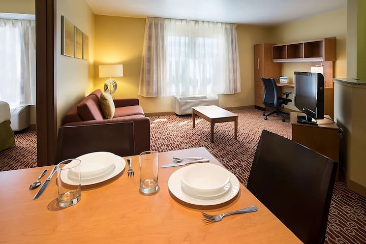 Experience the perfect combination of comfort and convenience in contemporary, spacious suites featuring fully-equipped kitchens, dedicated workspaces, and complimentary Wi-Fi. Maintain an active lifestyle with the on-site fitness center, and relish outdoor amenities like a BBQ area and gazebo. A 24-hour convenience store and complimentary laundry facilities cater to a seamless extended stay. The property's business center meets the needs of corporate travelers.