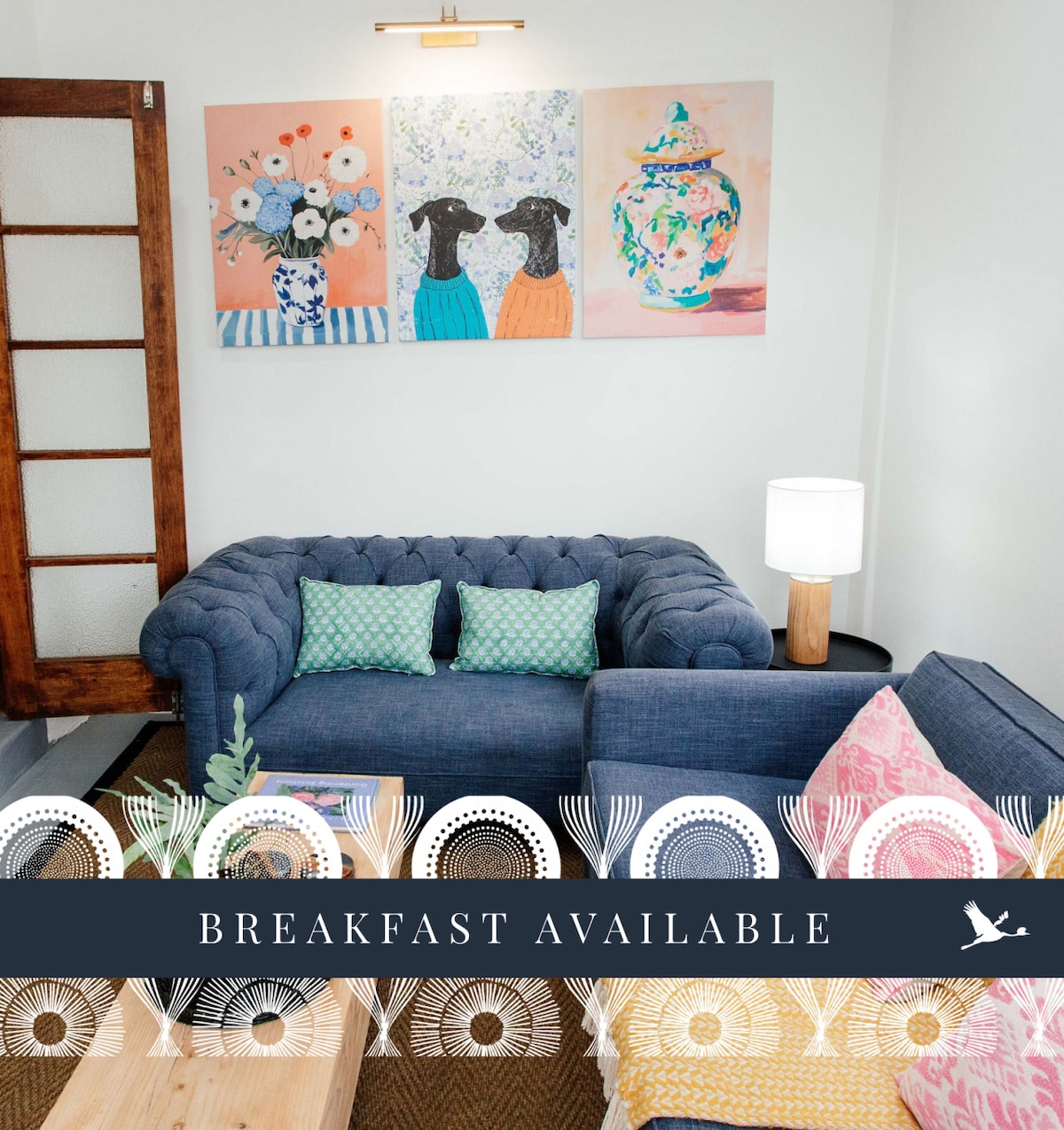 Nestled at the bottom of a Hilton country lane, Lacebark Cottage is an annex to a Tudor-style family home, set in a large picturesque and peaceful garden. Split over two levels, this character-filled cottage has a Queen bed, bathroom with shower, kitchenette, cozy lounge and backup power. Internally framed by original Oregon-pine beams and bespoke stained-glass windows, and under the canopy of a 70-year-old Queensland Lacebark tree, our family and other animals look forward to welcoming you!