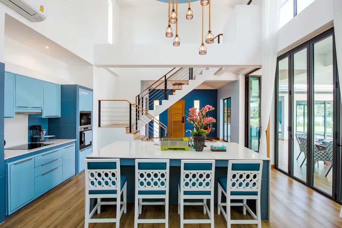 A private Pool Villa — The Sand and I Private Pool Villa, Unwind at a private 4-bedroom, 5-bathroom pool villa right in the heart of Hua Hin and steps to the beach. Enjoy a bright living room with a big-screen TV and streaming on Disney+ and Netflix—perfect for cozy movie nights after a beach day or golf round. Entire villa and private pool—your group has full and exclusive use during the stay.