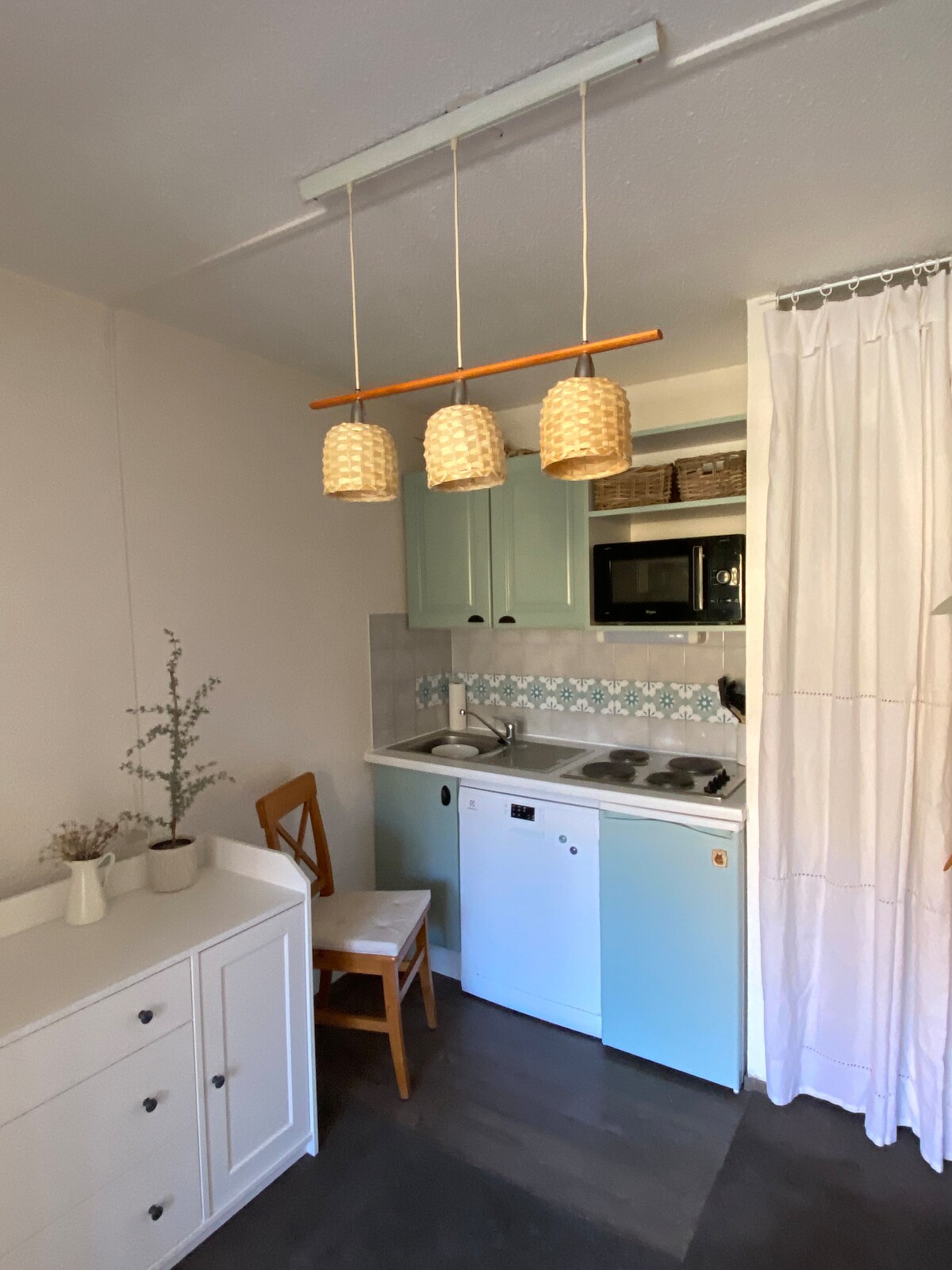 40 m2 apartment completely renovated in Nov 2022 on the top floor of a chalet with 6 apartments. Located in the Cognet district, 150 m from the ski lifts and 100 m from shops. Underground parking South-facing apartment with 14 m2 balcony, panoramic mountain and resort views. The accommodation includes a bedroom, a closed mountain corner with window, a bathroom, toilet, and bright main room. Ideal apartment for 4 people. Possibility of 2 extra beds on the sofa bed.