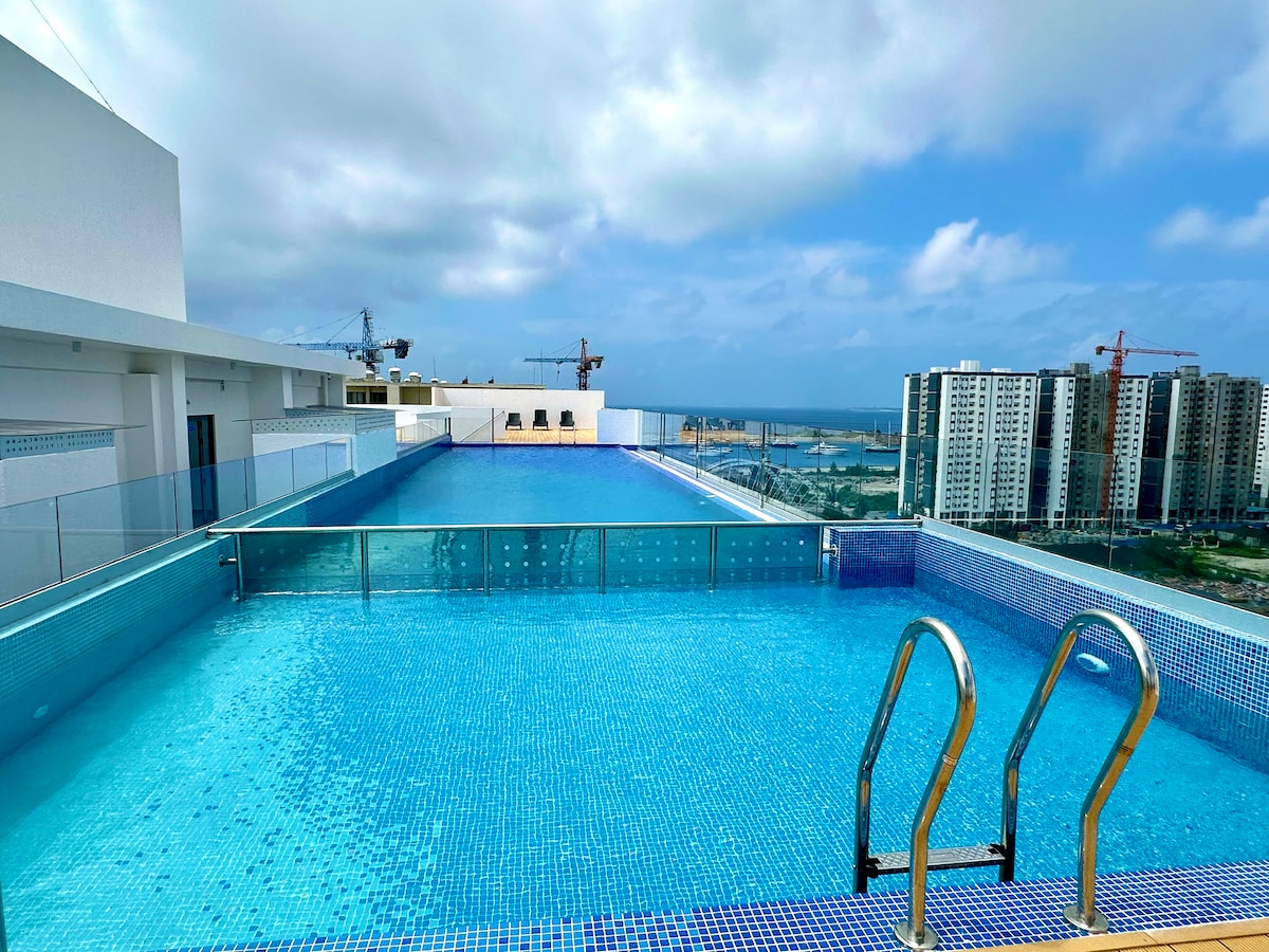 Lux 3BHK Apartment Gym+infinity pool Near Airport